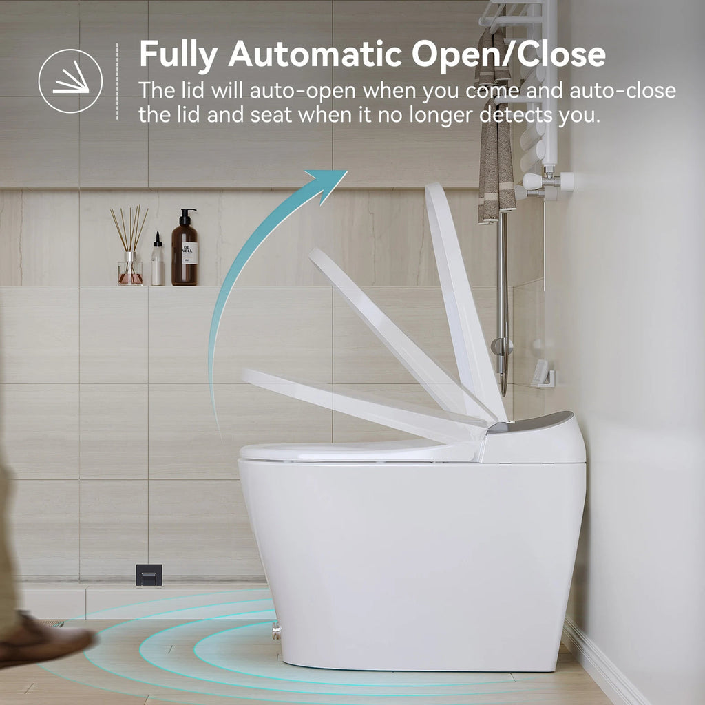 Experience a new level of hands-free convenience. The toilet's automatic lid raises and lowers as you approach and leave. This seamless, touchless operation means you never have to touch a handle or button, ensuring a more hygienic experience.