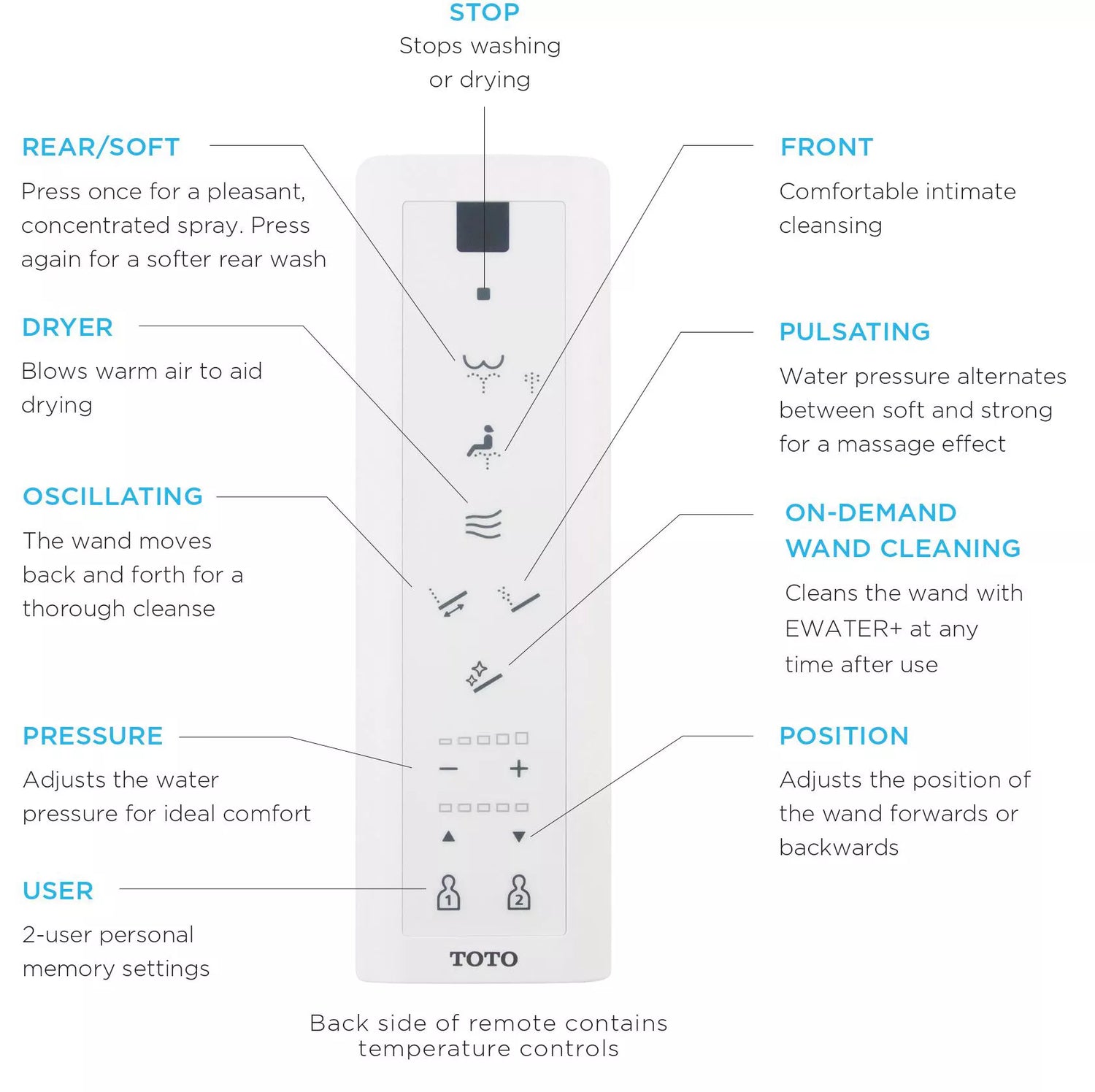 Its Rear Spray is engineered for the rear intimate area, featuring pleasant yet strong water pressure with distinct Regular and Soft settings.